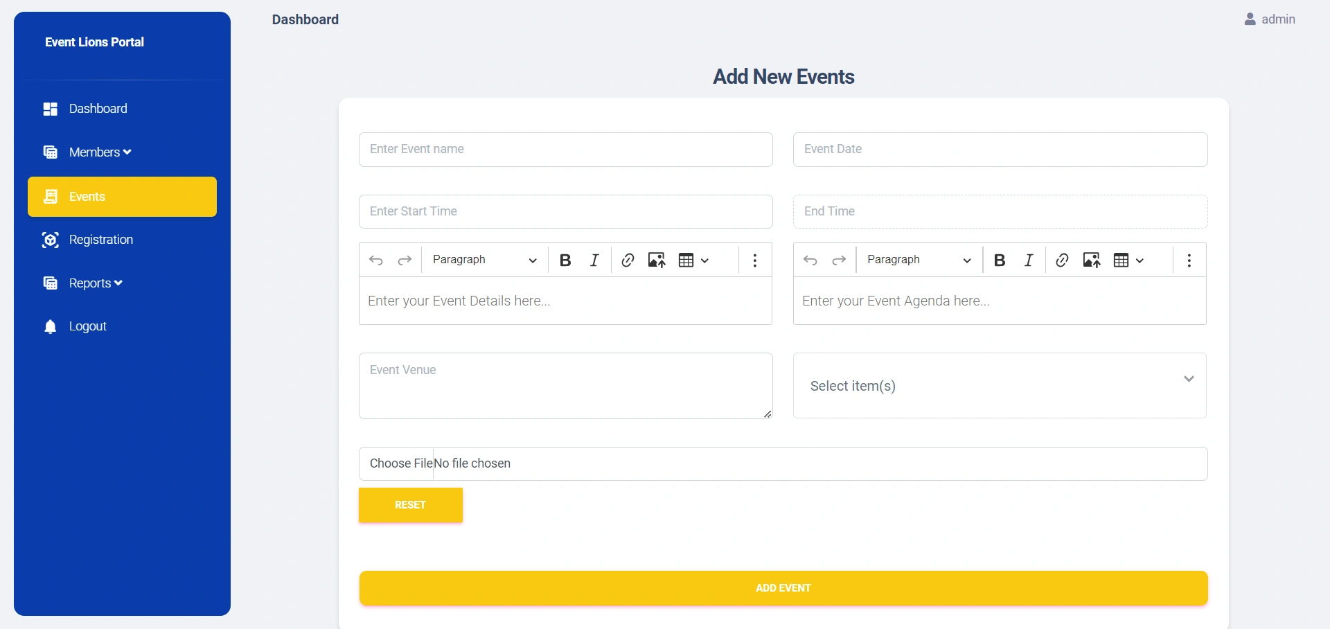 The project focused on creating a robust, user-friendly event management system with real-time features. The primary goal was to eliminate manual processes, reduce errors, and provide an automated system for managing members, tracking event participation, and handling communication efficiently