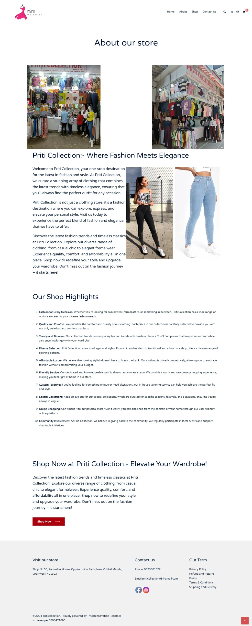 Priti Collection is a Virar, Maharashtra-based clothing shop that has been serving customers with stylish and affordable apparel for years. With the growing demand for online shopping, the brand decided to expand its reach and launch an e-commerce platform to showcase and sell its wide range of clothing collections online.
