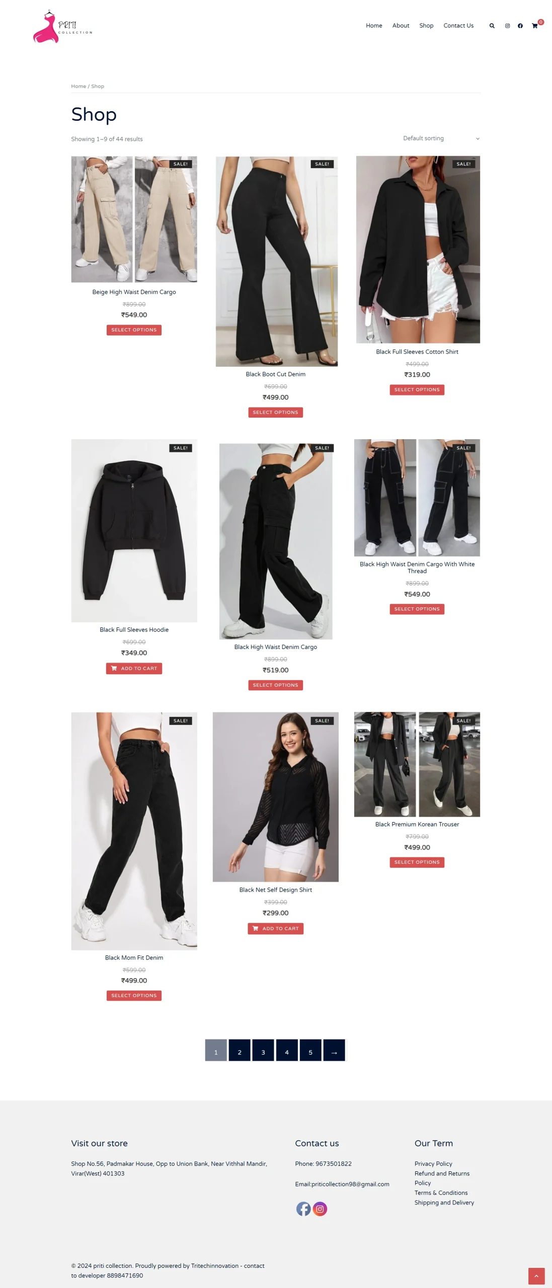 Priti Collection, a well-known clothing shop in Virar, Maharashtra, faced a major limitation with its offline-only retail presence. Customers increasingly preferred online shopping due to convenience and wider accessibility, but the brand had no digital platform to showcase or sell its products. This restricted their reach, reduced potential sales opportunities, and limited their ability to compete with other online-first clothing retailers.